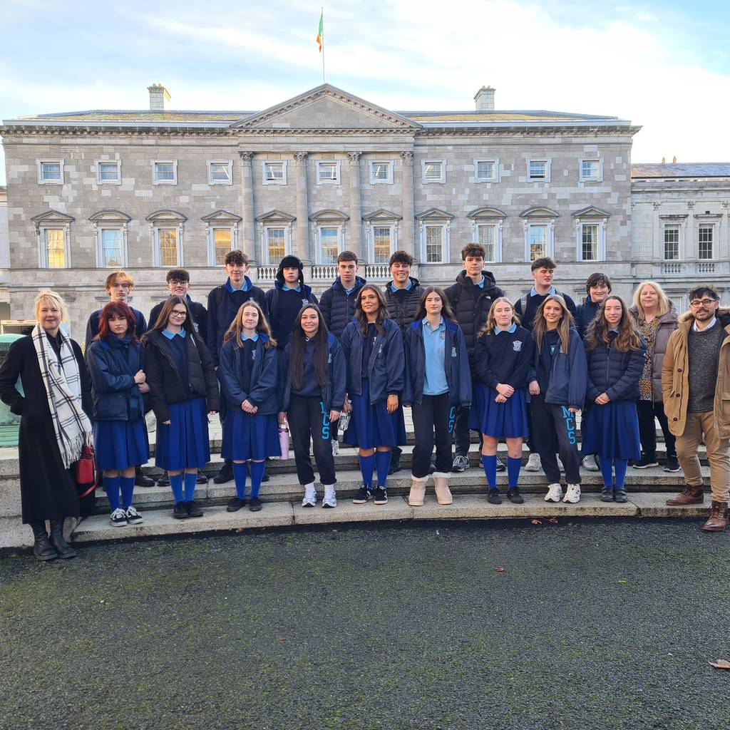 Our 5th year Politics and Society students had a great day out at Leinster House last Friday 9th January. They got a tour of the House, including both Dáil Éireann and Seanad Éireann. Minister Darragh O’Brien met with the and brought them to Government Buildings, where students participated in a lively and engaging discussion of government policies, past and present. Overall it was a hugely educational and enjoyable trip. Sincere thanks to Ms Kennedy and Mr Davidson who organised the trip.