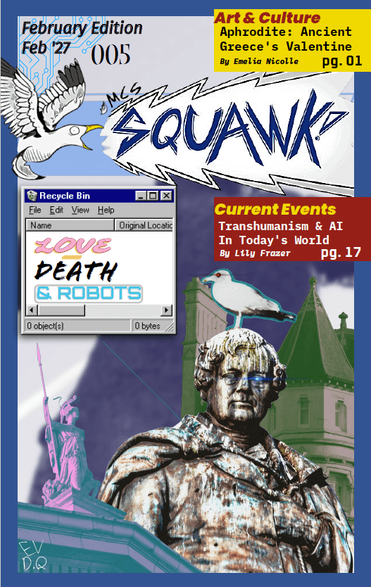 Click here to download our fifth issue. This issue’s theme is Love, Death, and Robots, and covers broad topics from Valentine’s day, fiction writing, and philosophical conversation. Some stand-out articles are Aphrodite: Ancient Greeceby Emilia Nicolle, Stripe Young Scientists by Tara Eason, and Robots, Love, and Death: Philomathy and Democracy in the AI Age by our very own Mr Davidson!